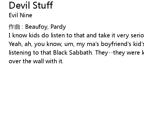 | Yeah, ah, you know, um, my ma's boyfriend's kid's into the devil stuff from listening to that Black Sabbath. They--they were killing cats and writing all over the wall with it. |