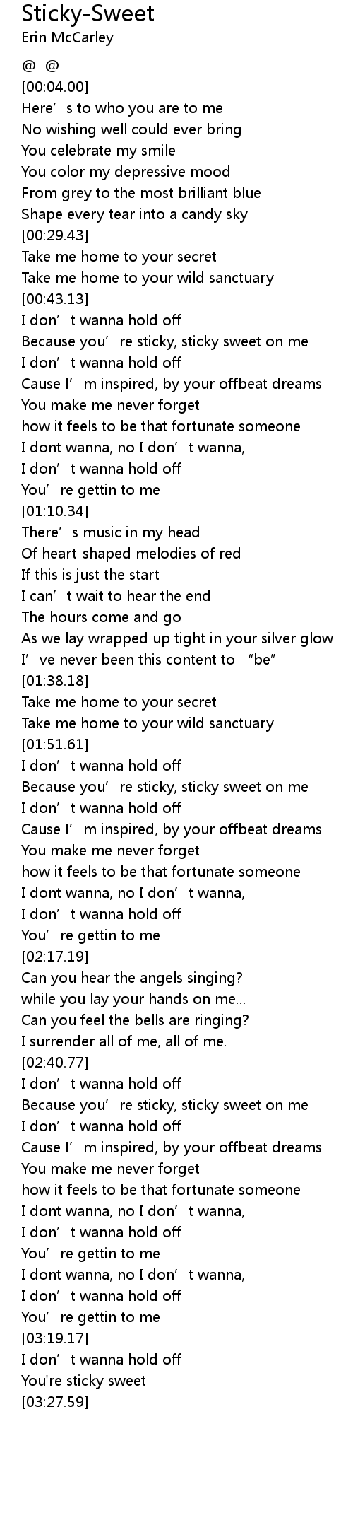 | [03:24.21] | You're sticky sweet |