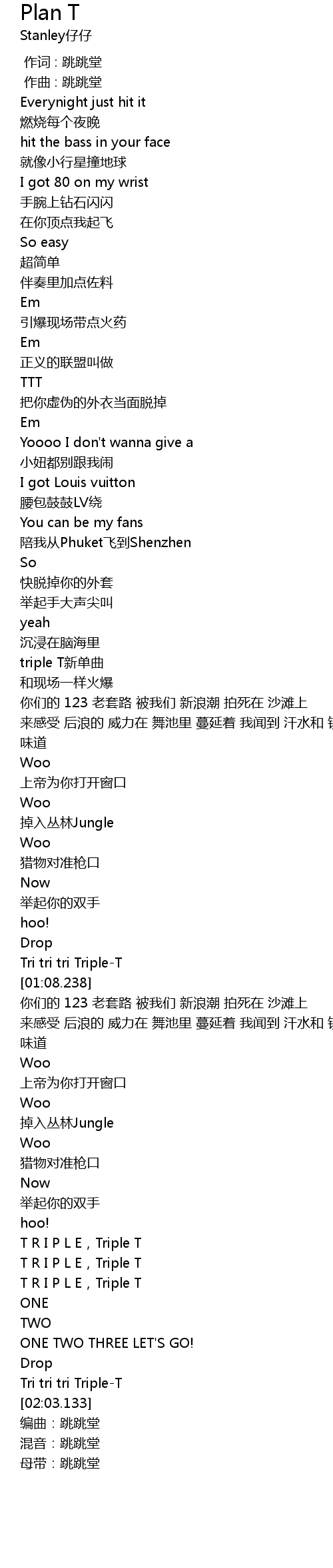 | [00:00.000] | zuò cí : tiào tiào táng |