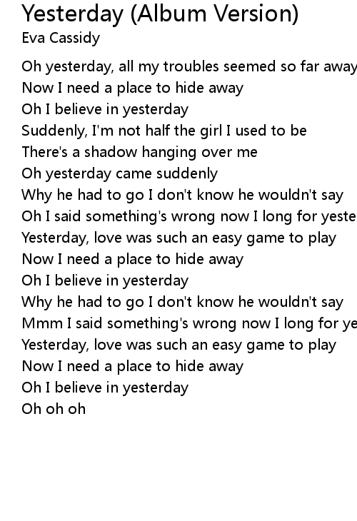 Oh yesterday, all my troubles seemed so far away |