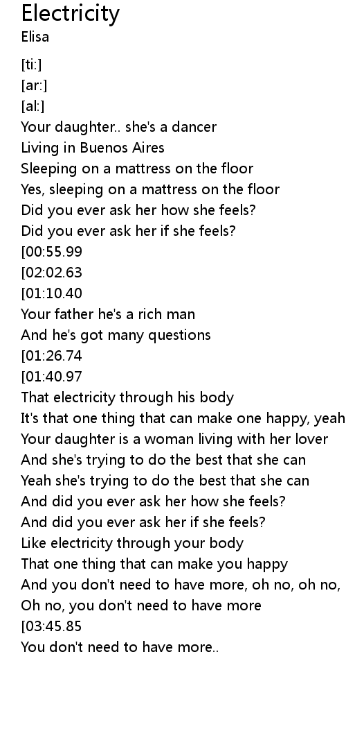 | [03:06.05][00:55.99] | Electricity through her body |