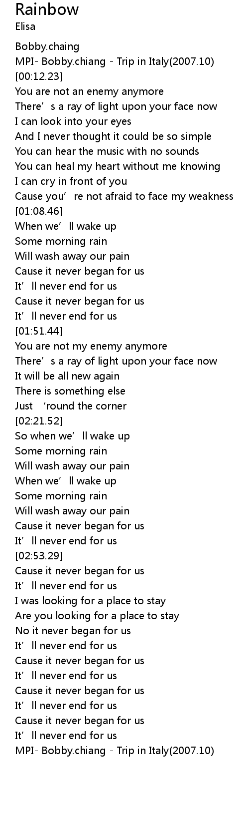 | [00:03.44] | MPI- Bobby.chiang - Trip in Italy(2007.10) |
