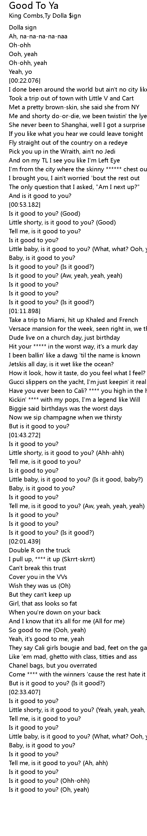Is it good to you? (Good) |