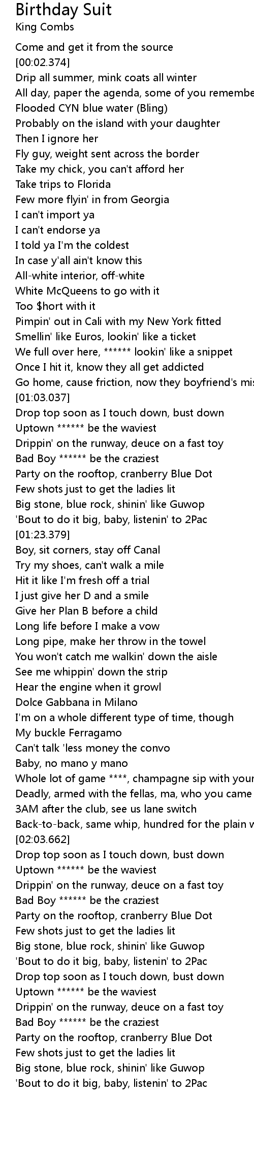 Whole lot of game ****, champagne sip with your main chick |