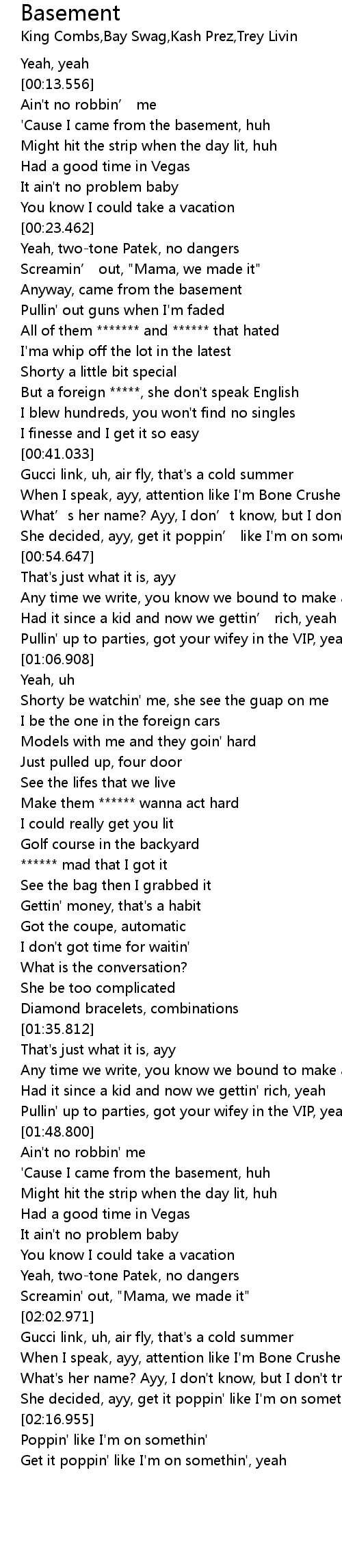 | [00:15.633] | ' Cause I came from the basement, huh |