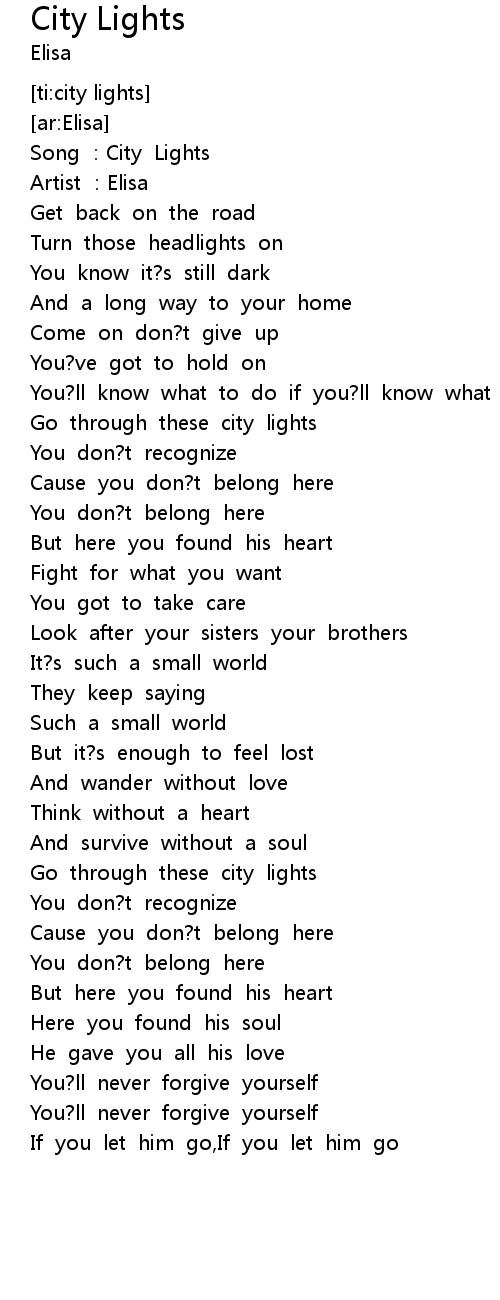 | [00:03.30] | Song : City Lights |