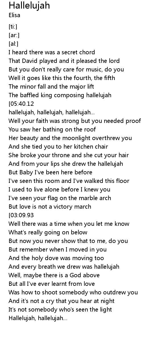 | [02:00.38] | And from your lips she drew the hallelujah |