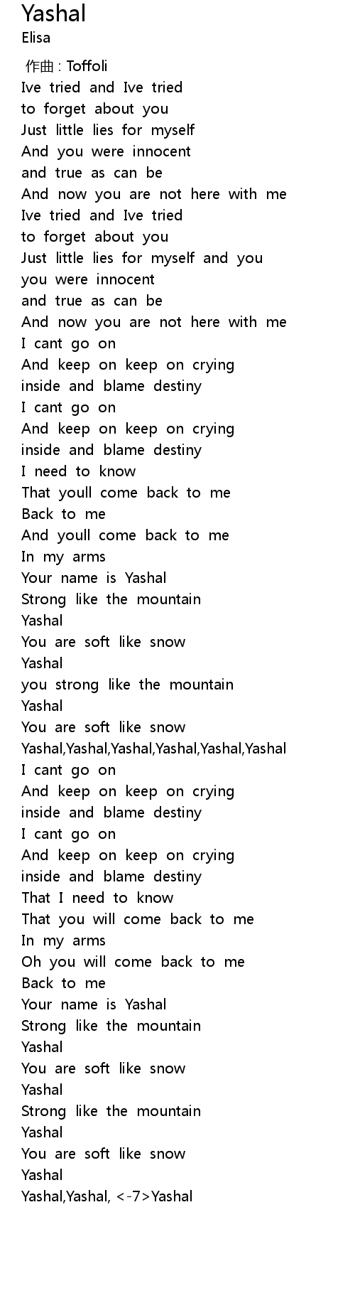 | [04:43.87] | Yashal, Yashal, 7 Yashal |