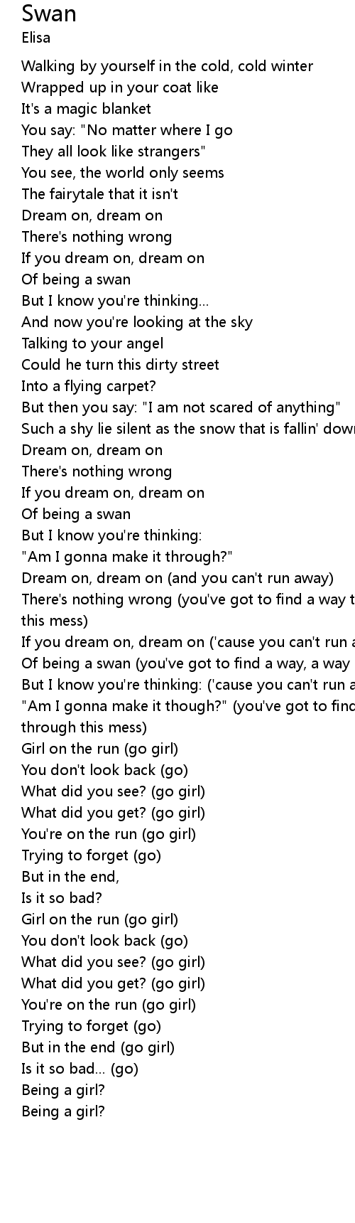 Of being a swan (you've got to find a way, a way out of this mess) |