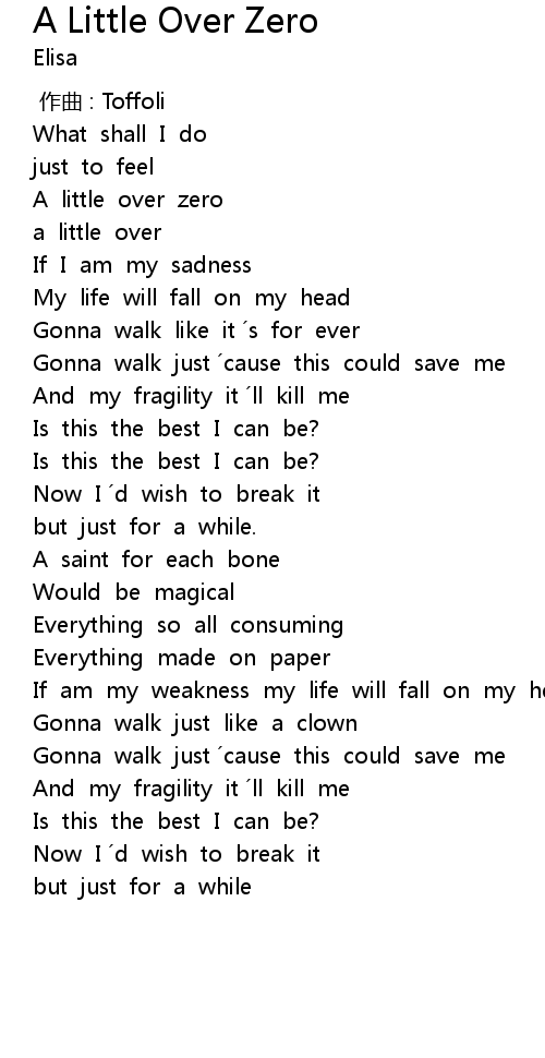 | [01:09.483] | Gonna walk just ´cause this could save me |