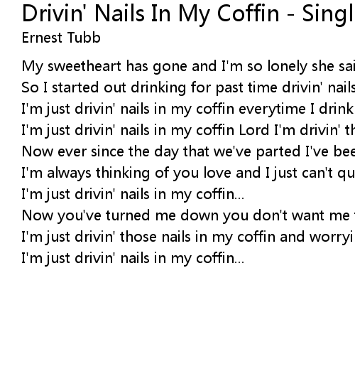 I'm just drivin' those nails in my coffin and worryin' my darlin' over you |