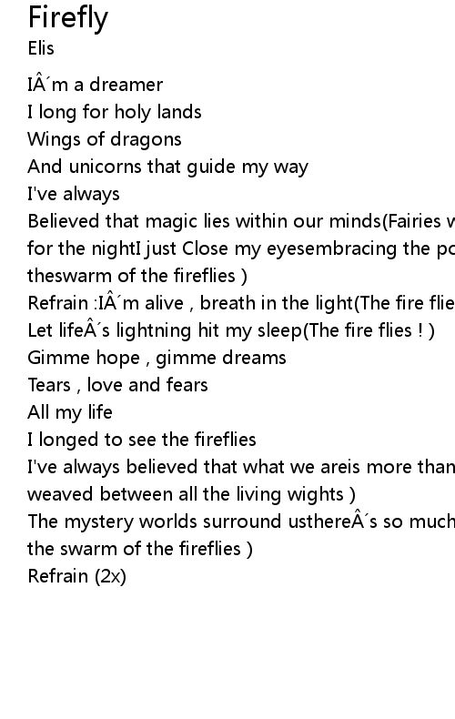 | Refrain : I m alive , breath in the light The fire flies ! | |