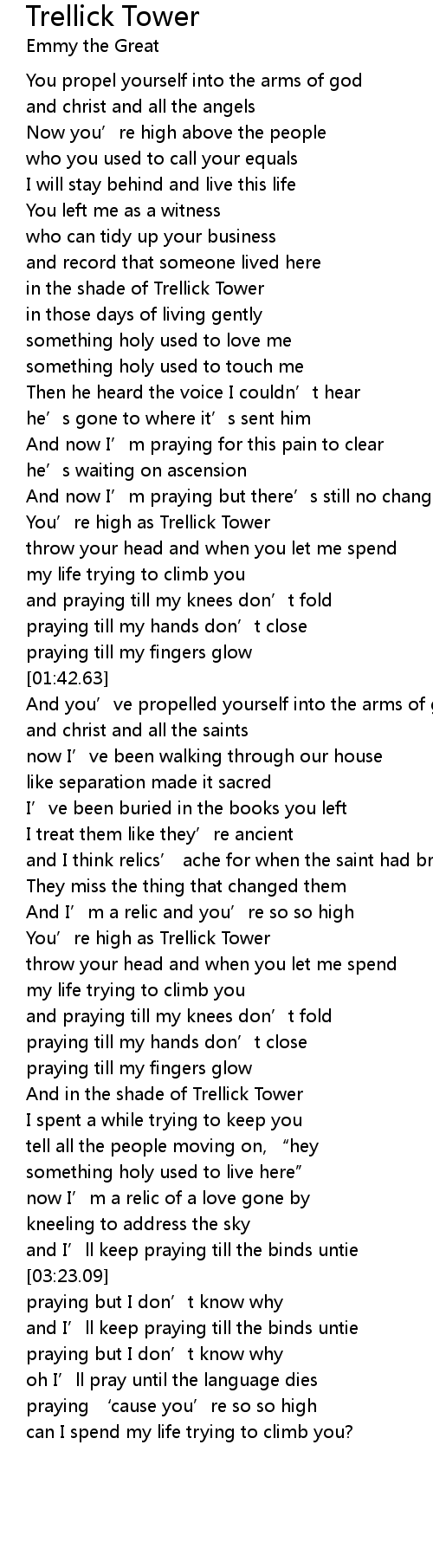 | [02:55.65] | And in the shade of Trellick Tower |