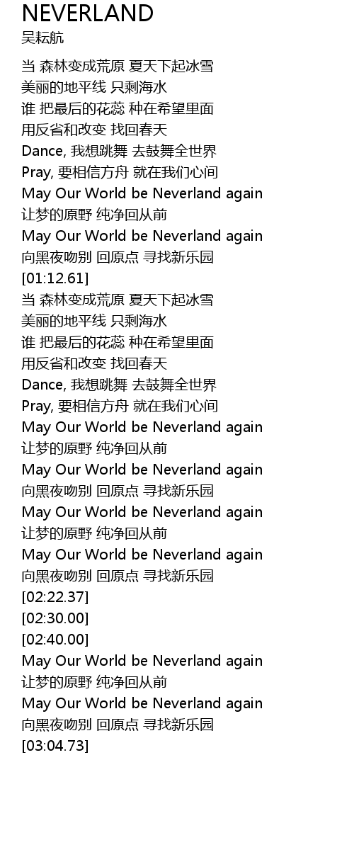 | [01:56.79] | May Our World be Neverland again |