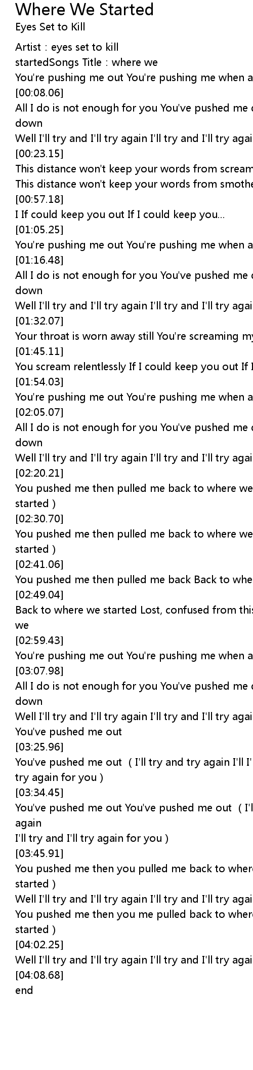 | [03:46.53] | You pushed me then you pulled me back to where we started where we started |