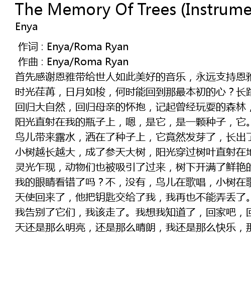 | [00:00.000] | 作词 : Enya/Roma Ryan |