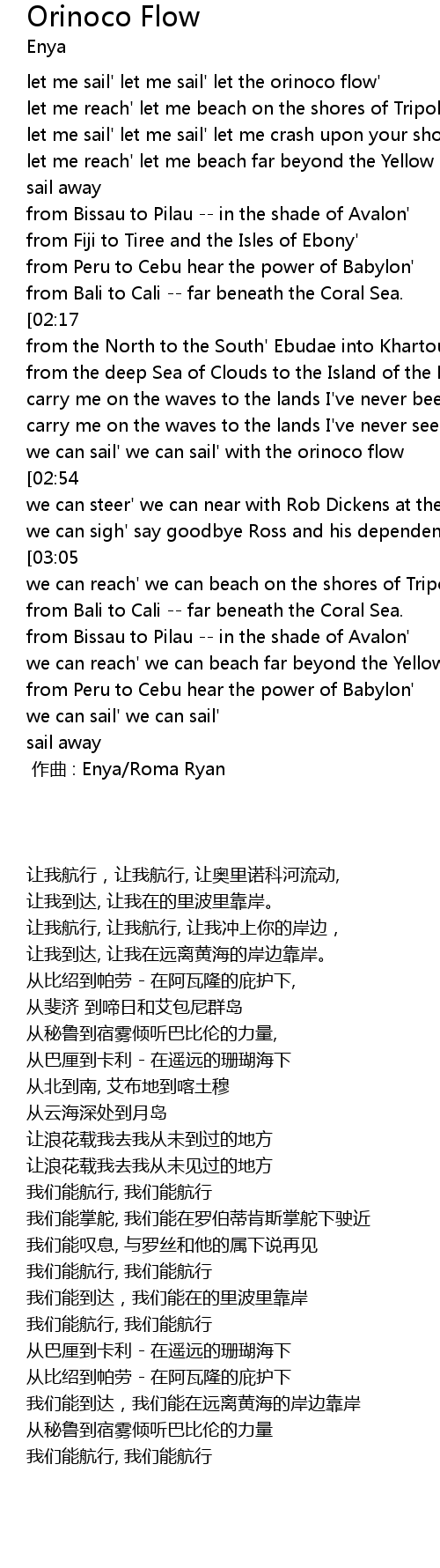 | [00:00.00] | 作曲 : Enya/Roma Ryan |