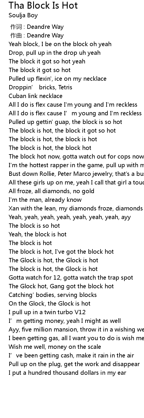 | [00:52.83] | The block is hot, the block it got so hot |