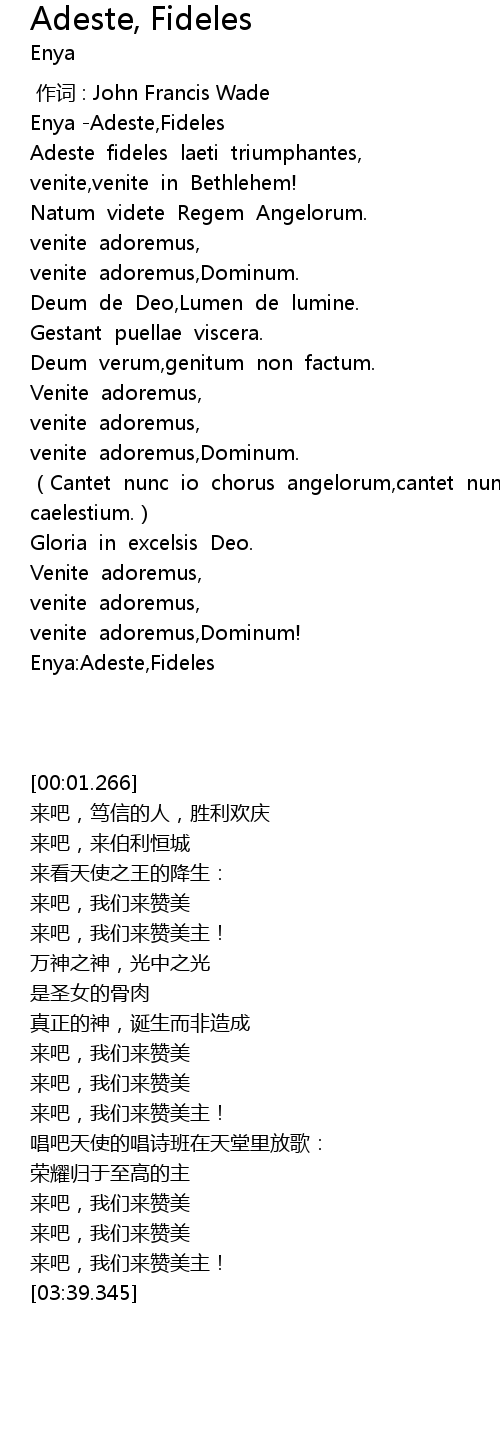 | [01:19.240] | Deum de Deo,Lumen de lumine. |