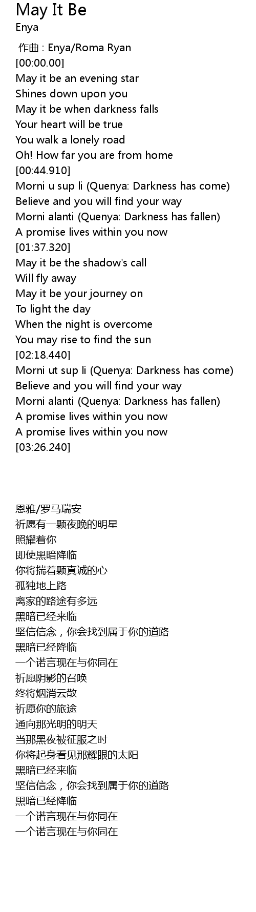| [00:00.00] | 作曲 : Enya/Roma Ryan |