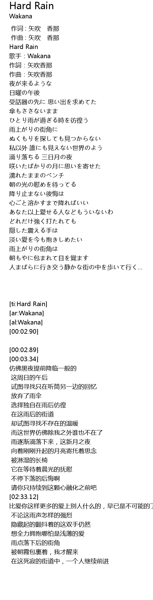 | [00:02.90] | Hard Rain |