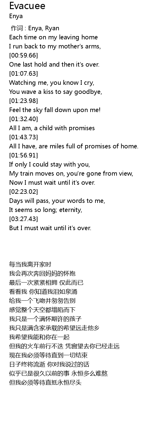 | [00:00.00] | zuò cí : Enya, Ryan |