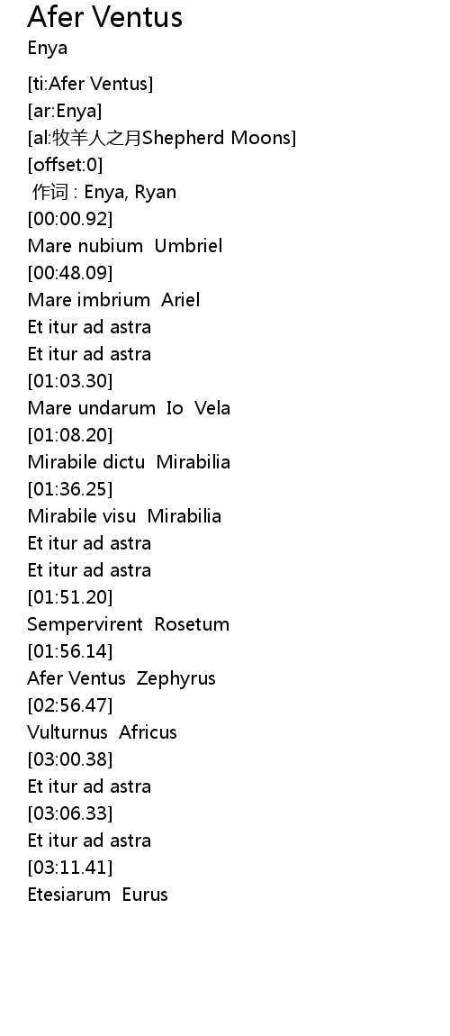 | [02:52.27] | Afer Ventus Zephyrus |