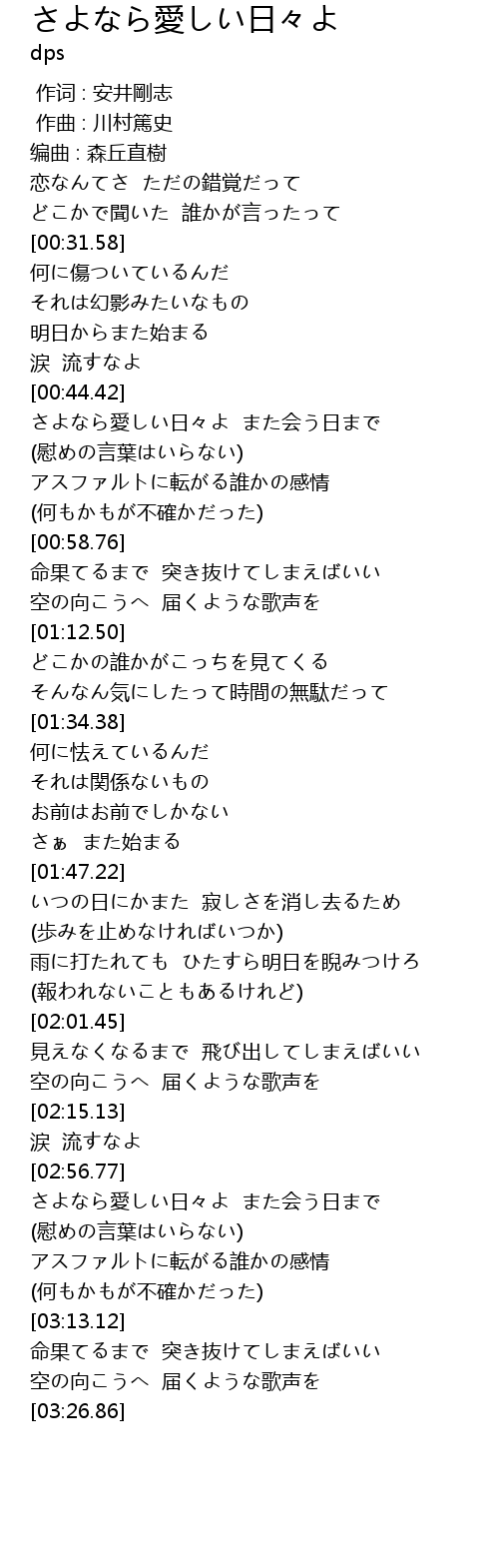 | [02:58.82] | さよなら愛しい日々よ また会う日まで |