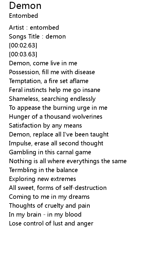 | [00:01.50] | Songs Title: demon |