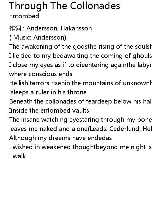 | Beneath the collonades of feardeep below his hallsin the endless realms of | |