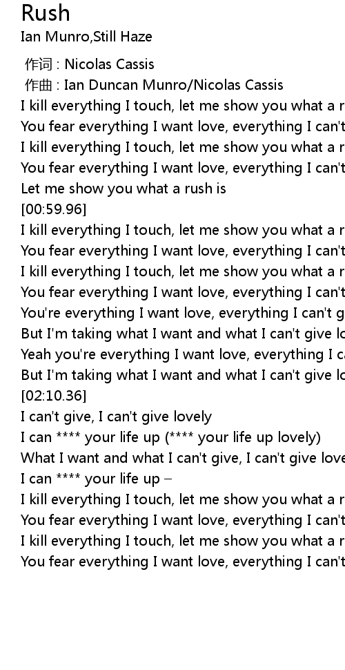| [02:53.17] | I kill everything I touch, let me show you what a rush is |