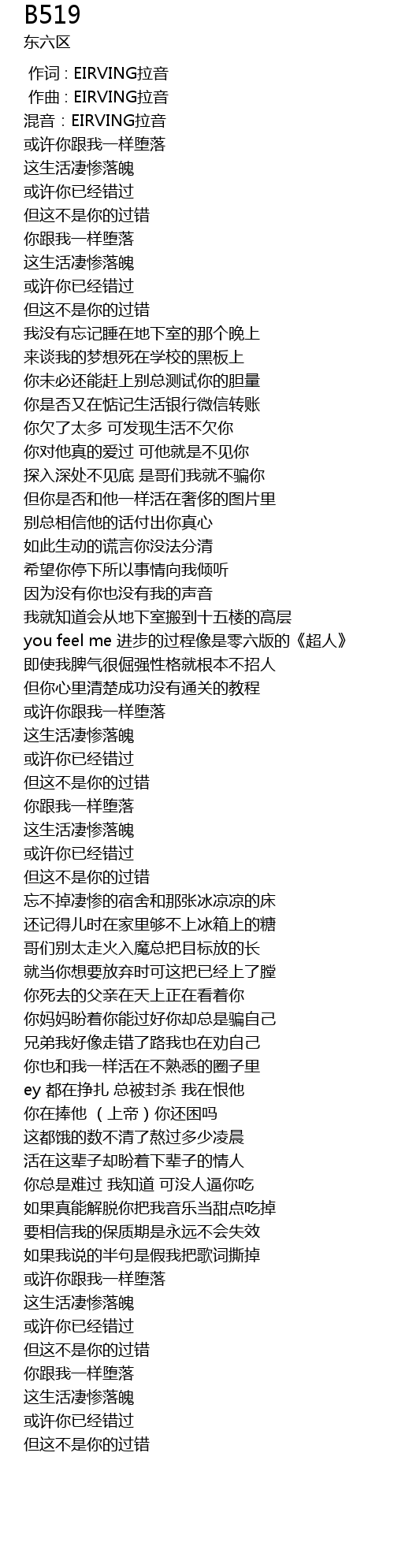 | [00:00.000] | 作词 : EIRVING拉音 |