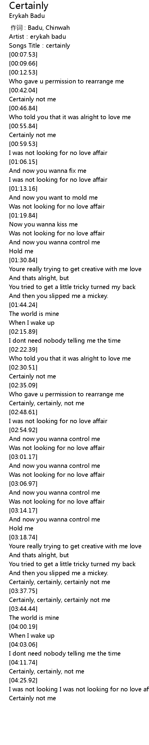 | [00:04.41] | Songs Title:certainly |