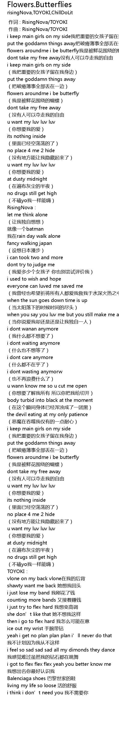 | [02:47.648] | i got to flex flex flex yeah you better know me wo xiang chu ming ni zui hao ren shi wo |