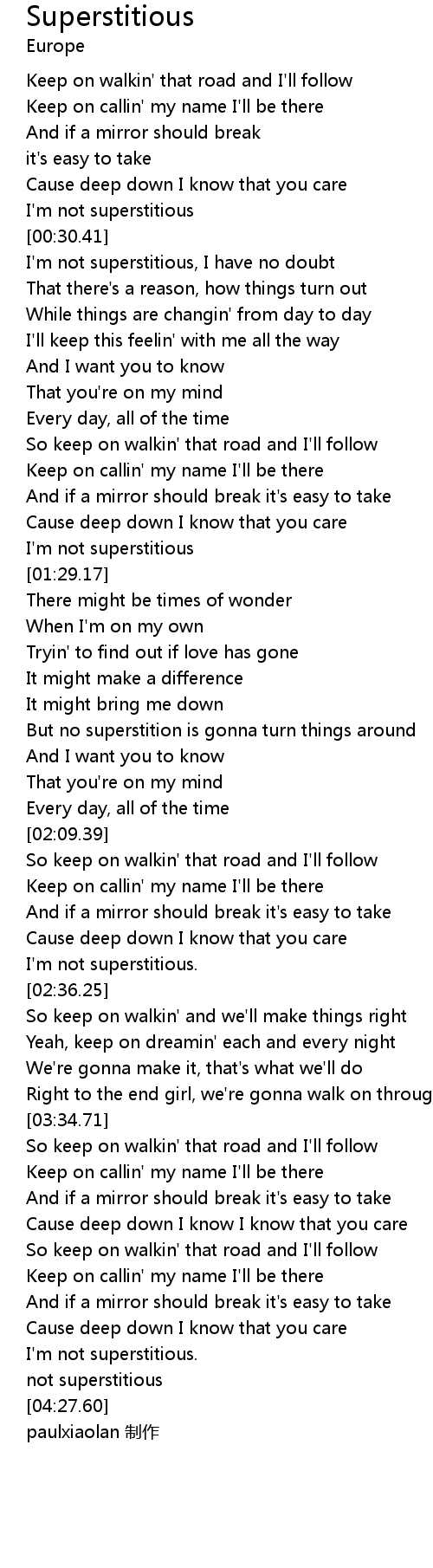 | [00:21.91] | I'm not superstitious |