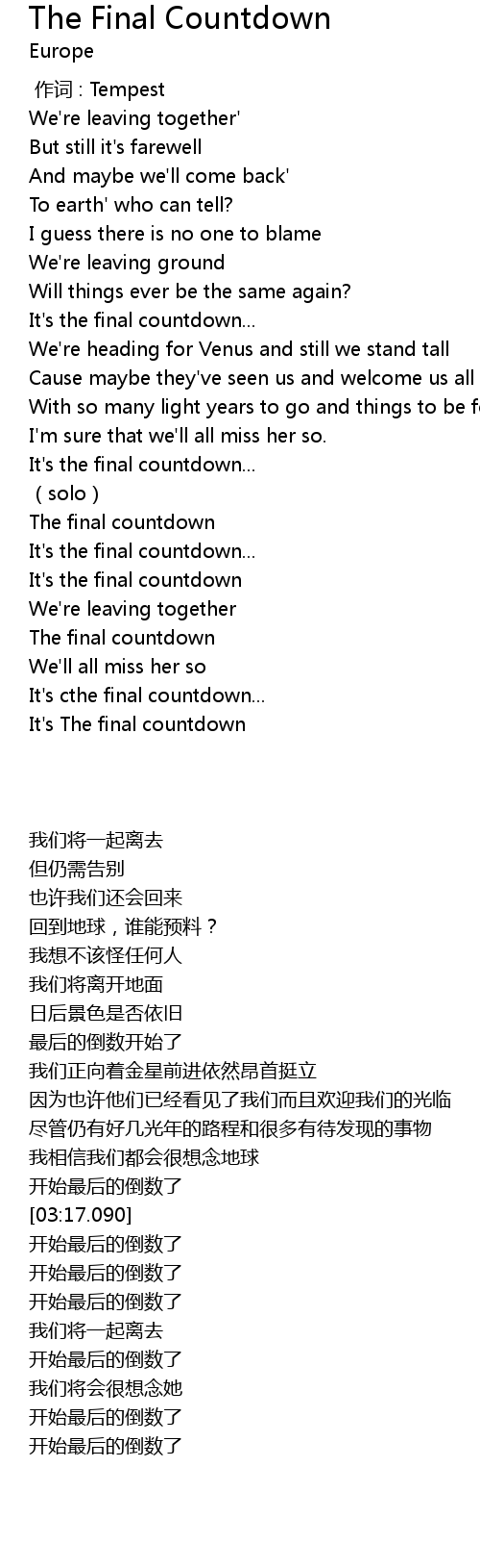 | [04:44.600] | The final countdown |