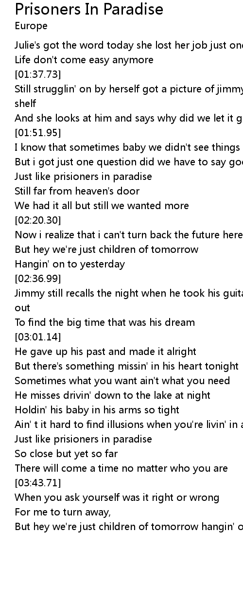 [03:52.61] But hey we're just children of tomorrow hangin' on to yesterday