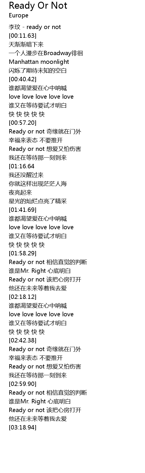 | [02:51.40] | Ready or not 想爱又怕伤害 |