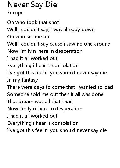 I've got this feelin' you should never say die |