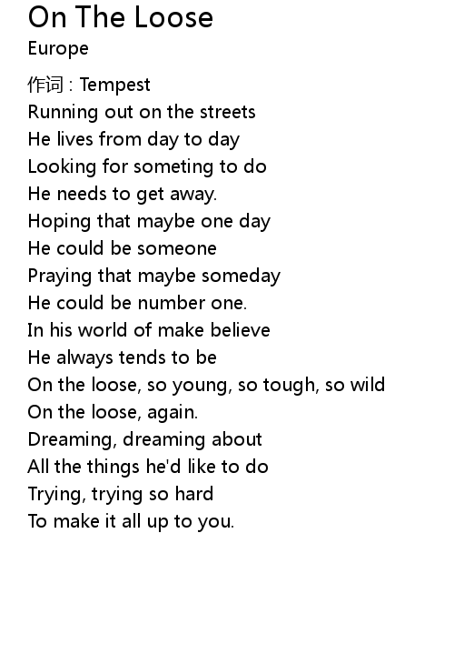 | 歌曲 | On The Loose |