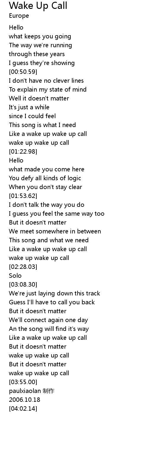 | [03:38.66] | wake up wake up call |