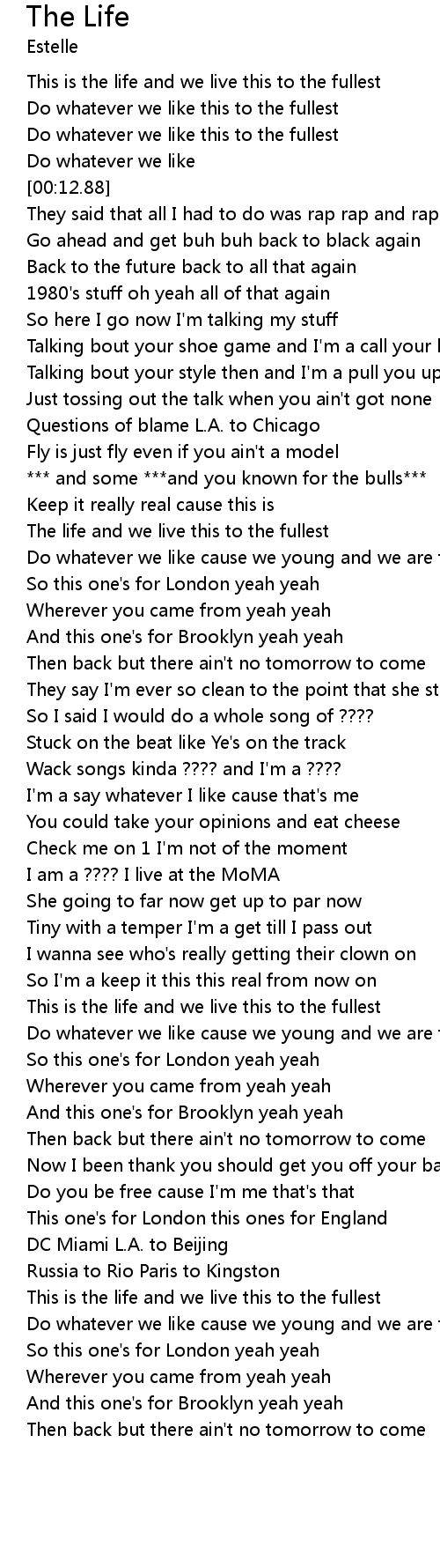 | [00:00.98] | This is the life and we live this to the fullest |