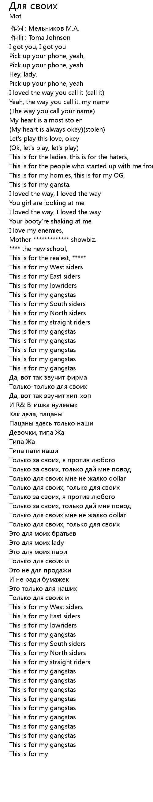 | [02:11.84] | Только для своих, только для своих |