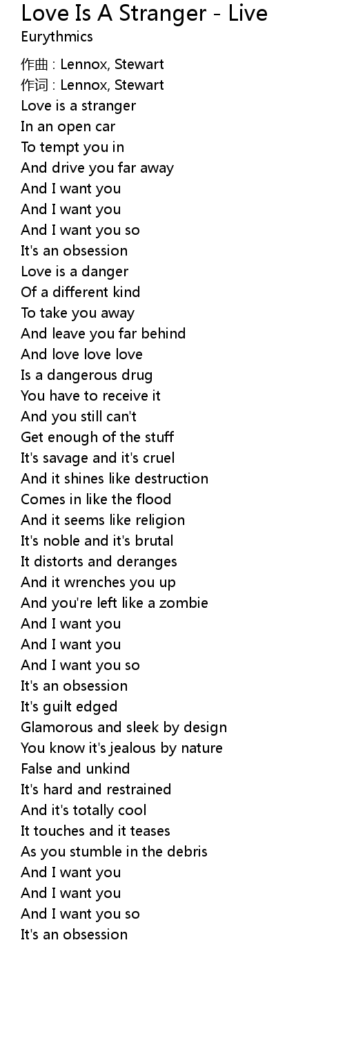 | 歌曲 | Love Is A Stranger - Live |