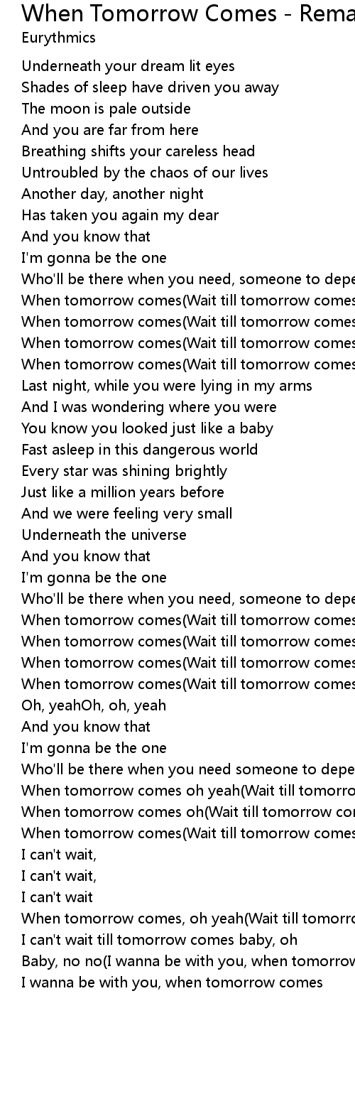 When tomorrow comes oh(Wait till tomorrow comes, yeah yeah) |