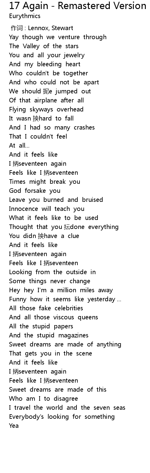 | [03:34.692] | Feels like I 抦seventeen |