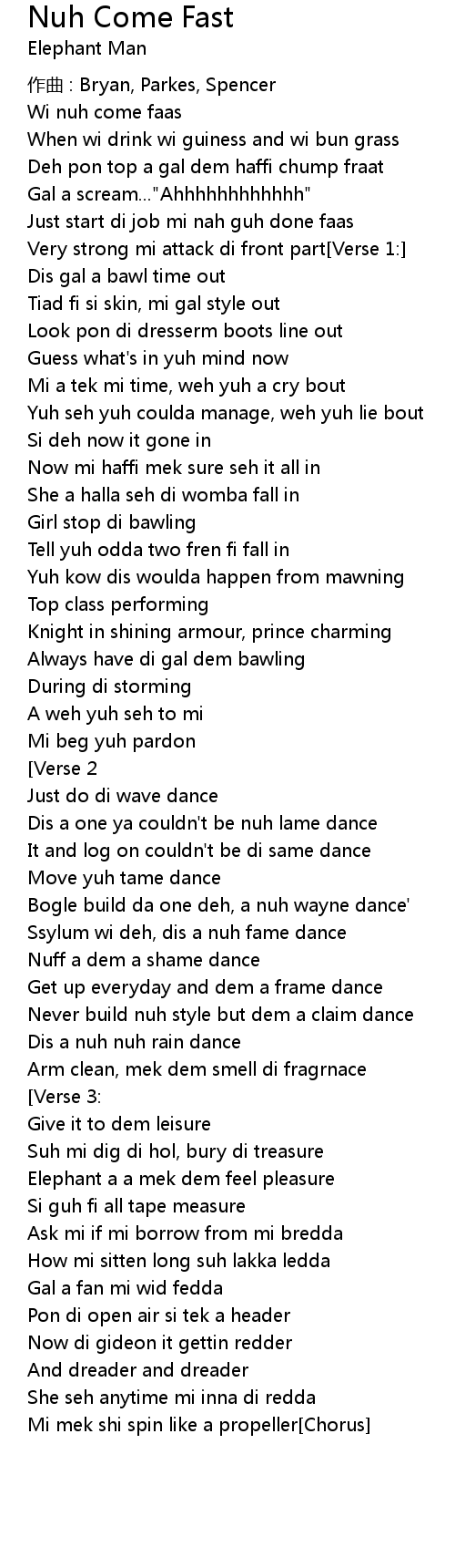 | 歌曲 | Nuh Come Fast |