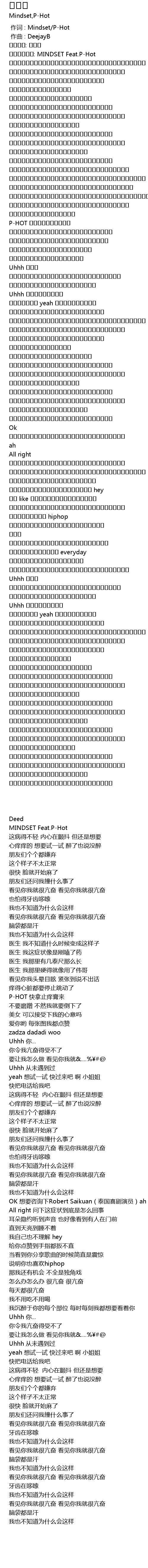 | [00:00.000] | 作词 : Mindset/P-Hot |