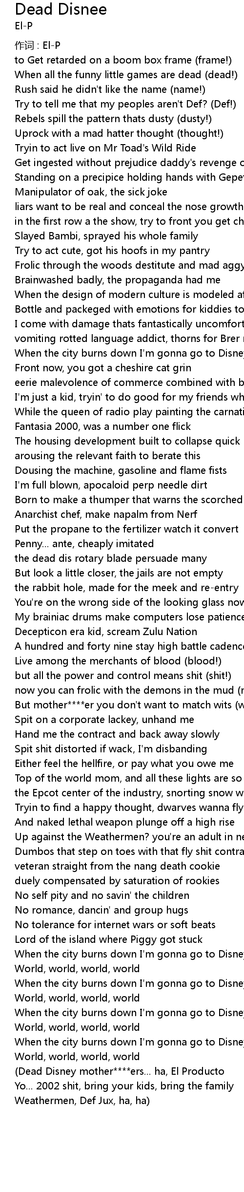 | (Dead Disney mother****ers... ha, El Producto | |