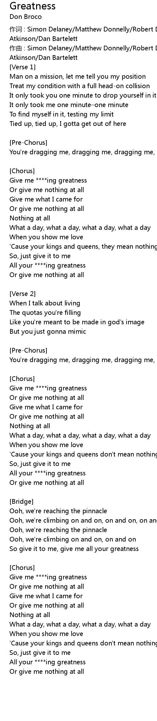 | Give me ****ing greatness | |